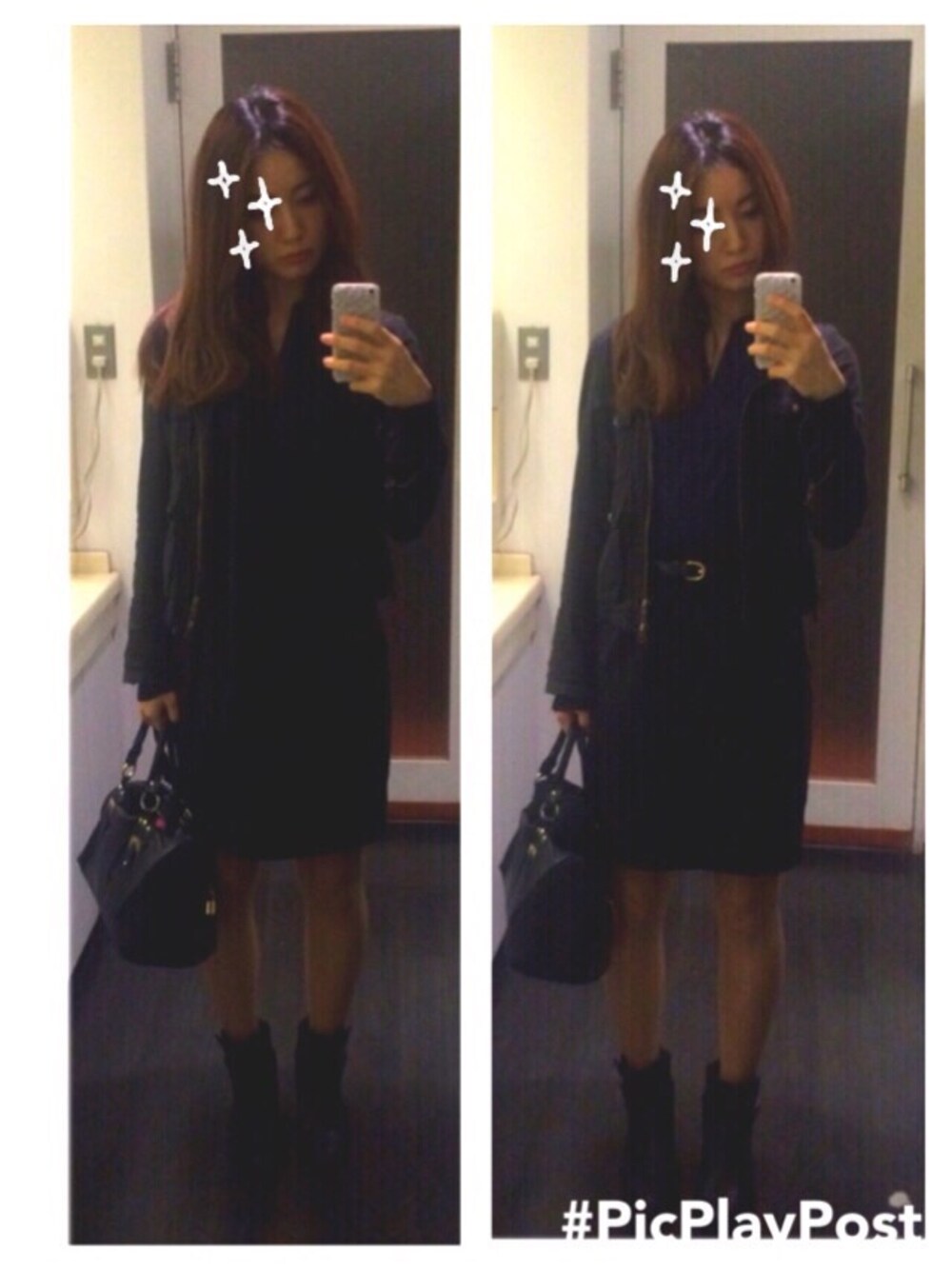 真っ黒でよくわからないなぁー。 左ストール有 右はなし です☺︎ ジャケット: FREES SHOP ワンピ : H&M