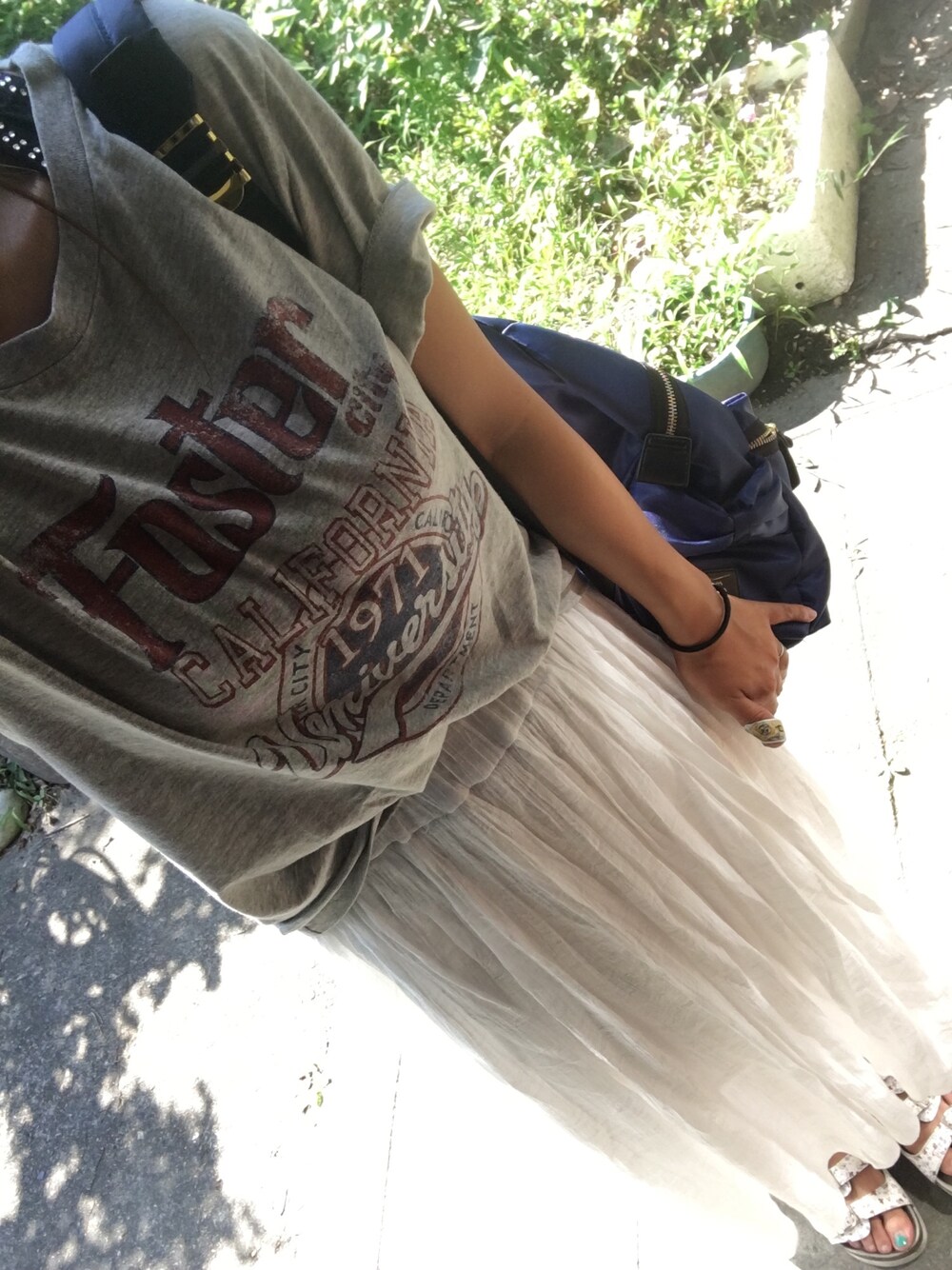 背景すごい茂ってる…(笑) 足のペディキュアはげてるし😂😂 親指に絆創膏ついてるし😂 このスカートかわいくて気に入ってます😙❤️❤️
