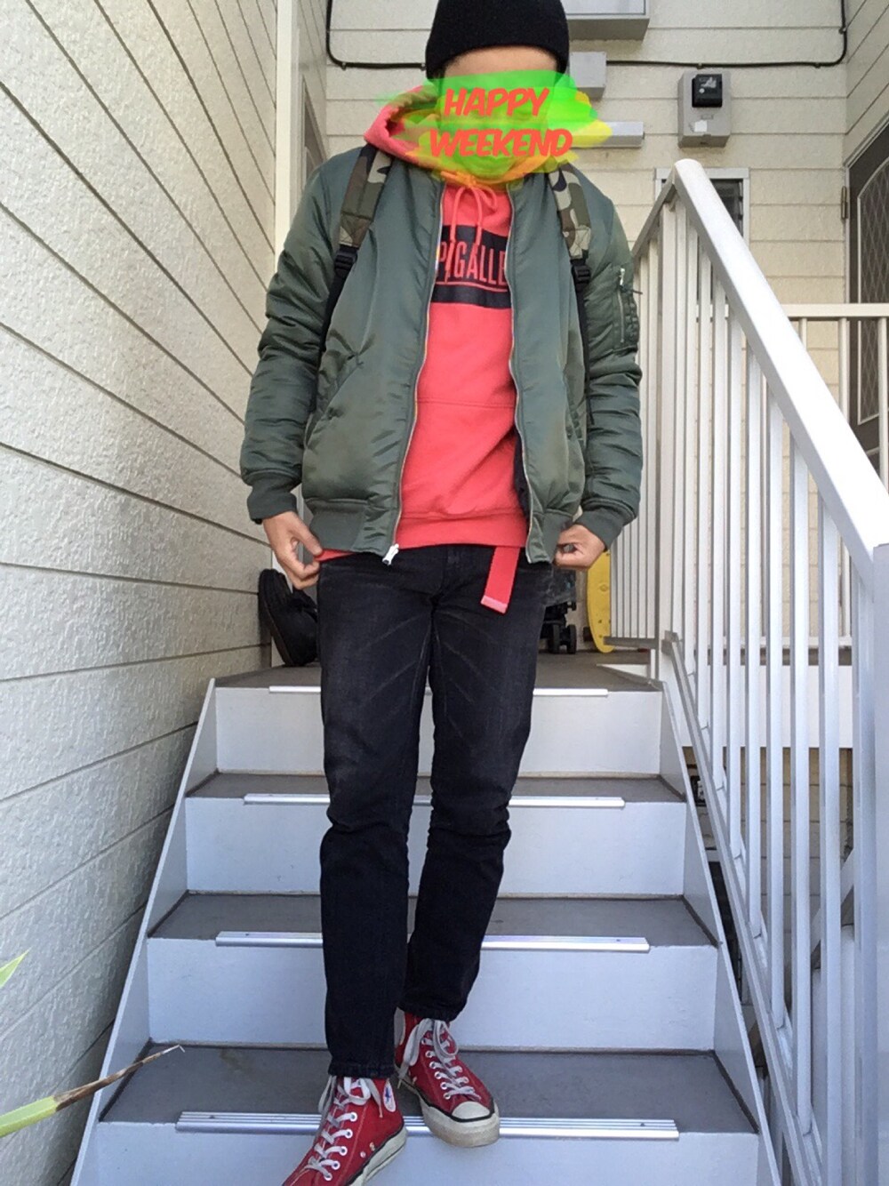 今日は晴れたので子供たちと公園に行って、ポケモンを捕まえます。 今日は赤色コーデ。 やっぱり、コンバースはUSAが一番だと改めて思いました。 さて、ポケモンゲットしに行こうかな。