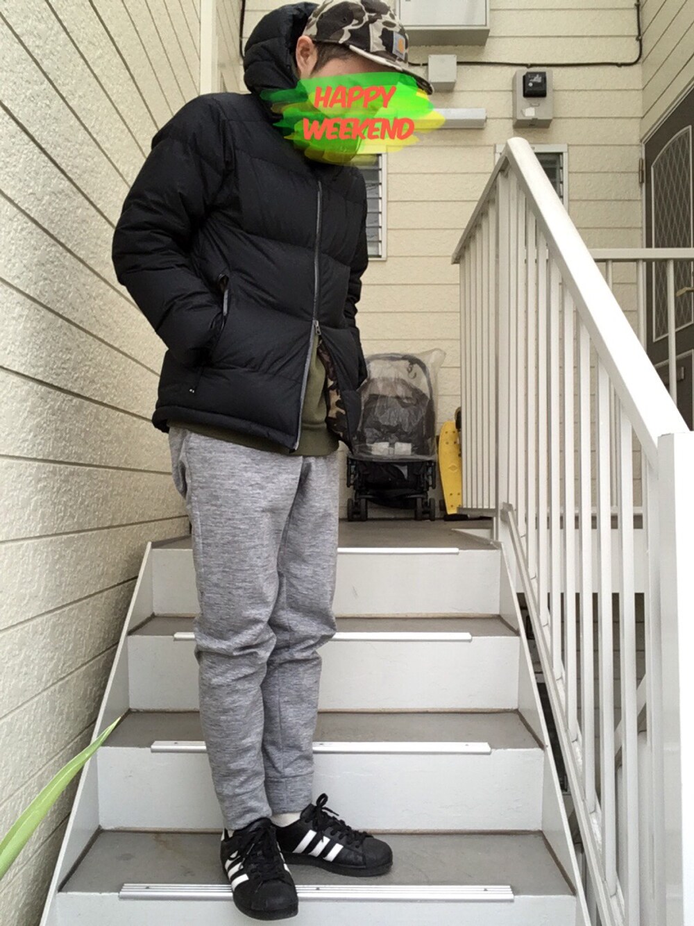 雨が降っていたので楽な格好で。 ユニクロのブロックテックフリースは暖かくて使いやすいですね! 近所のスーパーへ買い出しです。