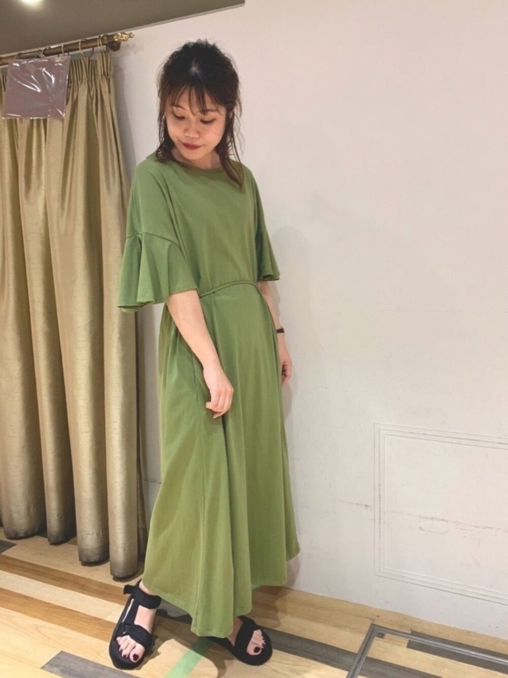 tomo .のワンピース「ウエスト紐付カットワンピース*」を使ったコーディネート