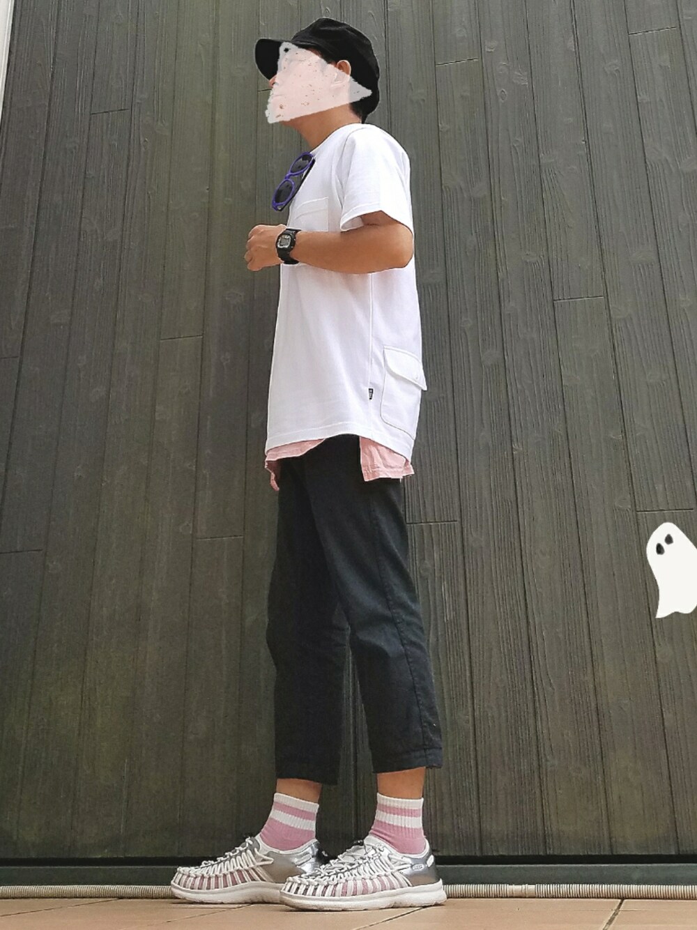 すみません、“スポーツミックス”の定義が分かりません(笑) なんかスポーティな感じになったのでタグ付けてみたんだけどね。 あ、スポーツ全くしません😅 定番の白ビッグTと思いきや、背面 左下にあるポケットがポイントです。 おそらくこのポケット、活用する機会ないと思いますが(笑)