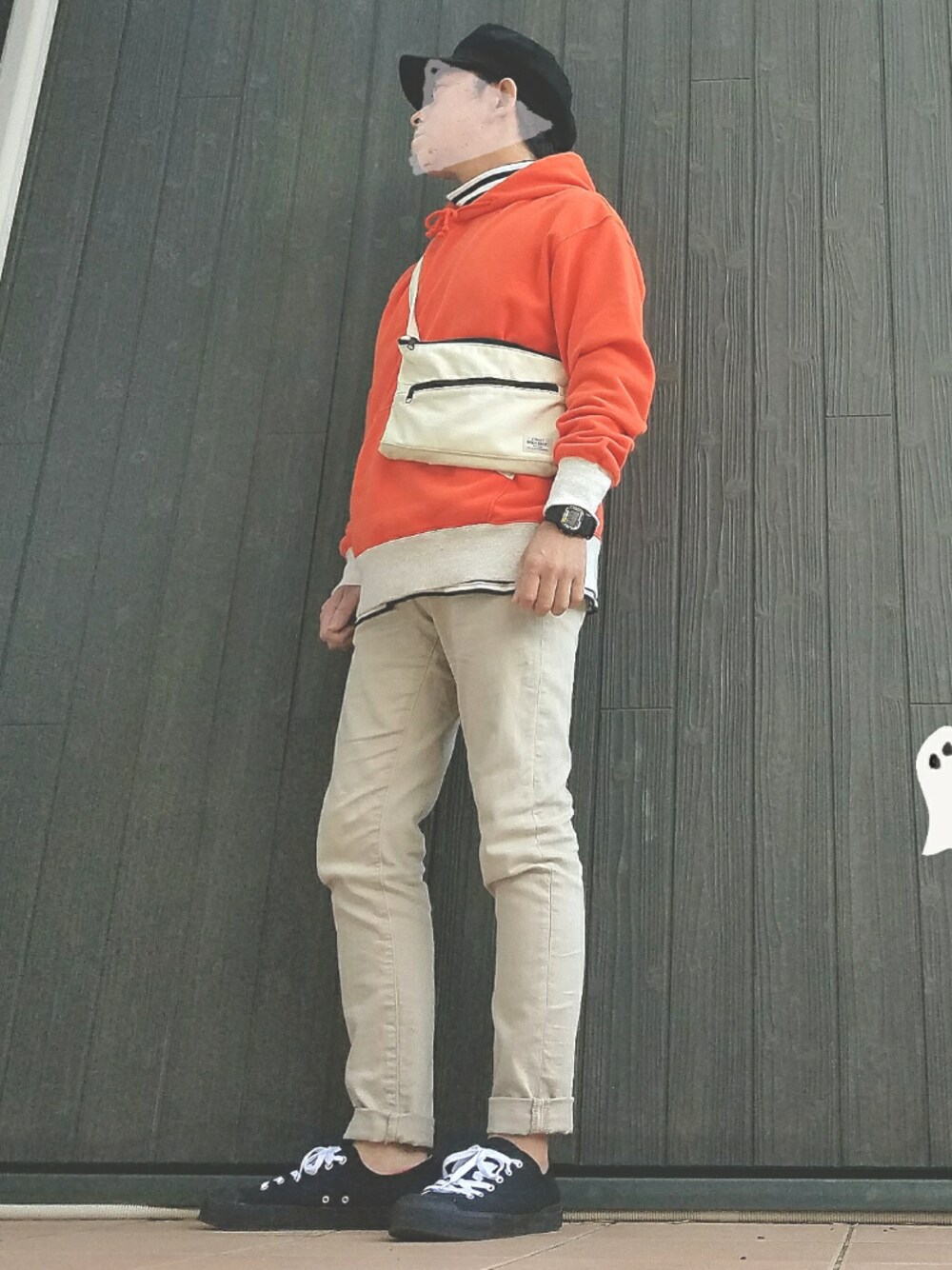 ボーダーのタートルネックをパーカーのインナーとしてチラ見せしてます。 以前ほめられたのでまたやってみました。