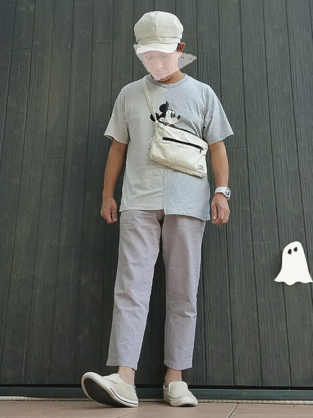 はい、またやりました。ディズニーに興味無いくせに 女子ウケ狙いのミッキーT! そしてやたら寸胴が目立つアングルで写ってしまった😅
