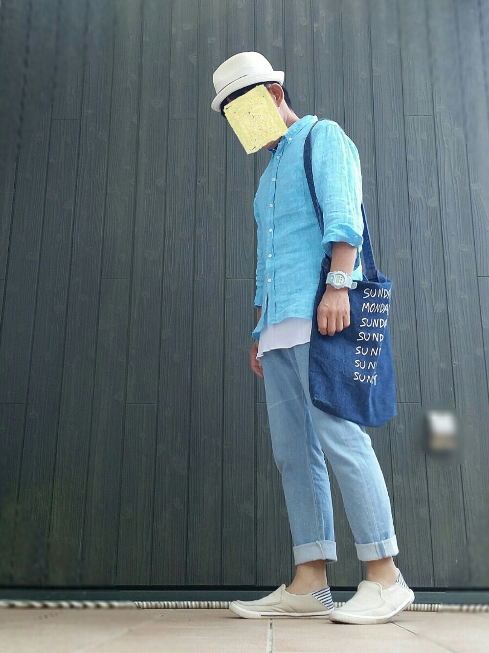 いんちょ。のトートバッグ「Ken Kagami×JUNRedデニムトートバッグ」を使ったコーディネート
