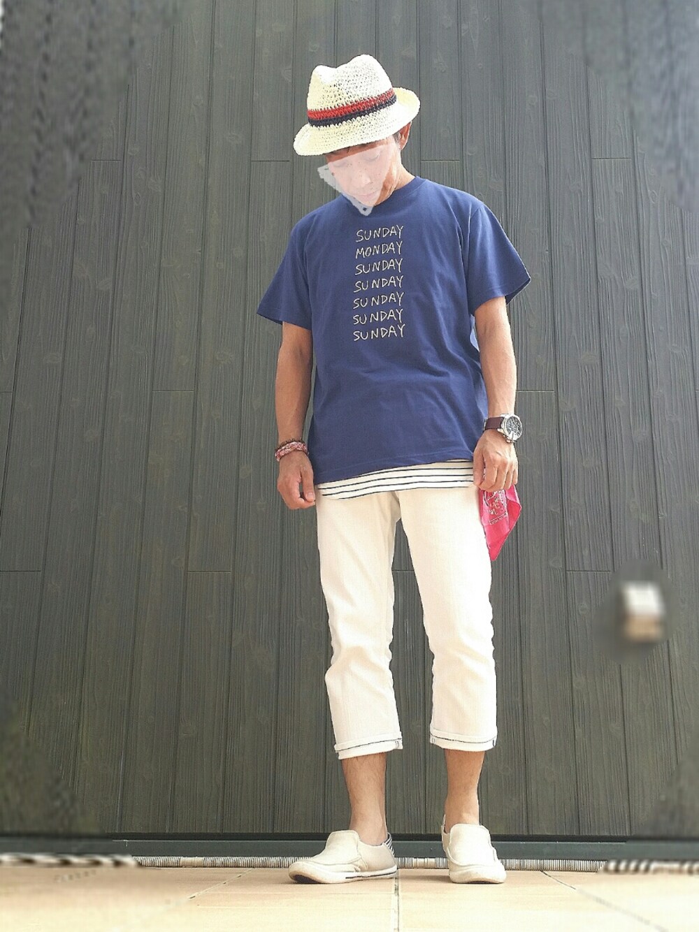 暑いですね~。 梅雨明けしたのはいいですけど、連日猛暑日で・・・。 毎日Tシャツ1枚だとコーデが単調になるので、なんとか工夫したいと思ってますが、なかなか難しいです。 あと、このTシャツの文字が、現在の精神状態を表しています。 『休みたい』。