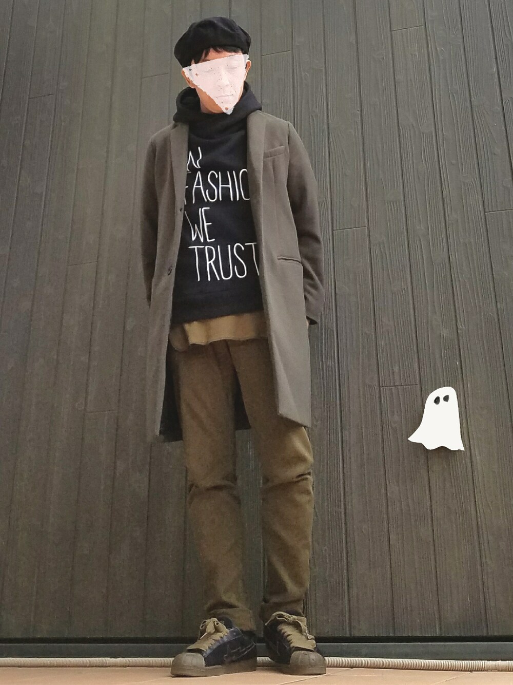 カーキ&ブラックです。今日も2色で統一。 カーキ好きなんですが、いつも背景に同化してしまいます(笑)