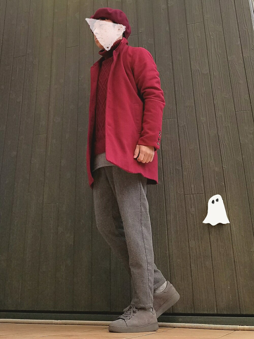 赤 x グレーのみ。 春コーデしたいけどまだ寒いです・・・。