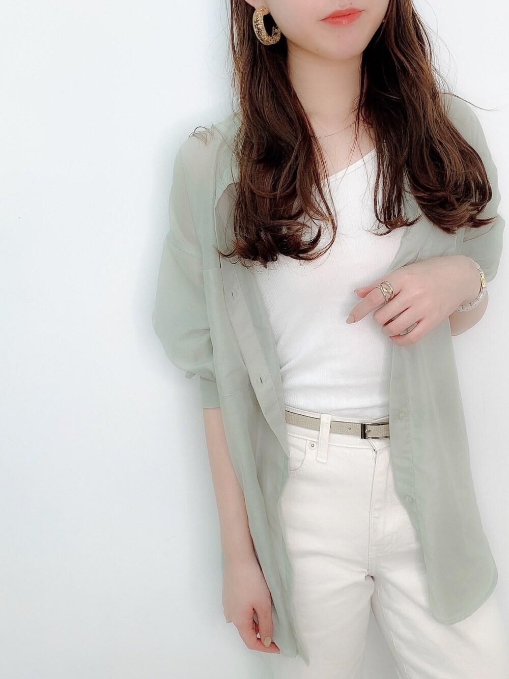 ホワイトコーデに アクセントで シャツを🤭💕💕 なんとなく白を着たくなる 季節🤭💕 .