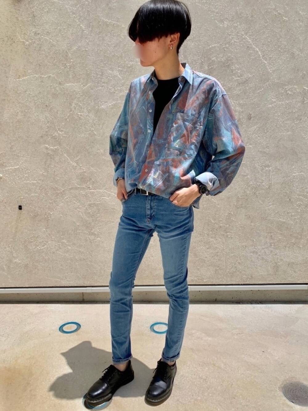 ZOZOのARIGATOSALEで駆け込みで買ったBeauty&Youthのスキニーのコーデ 丈とスキニー感がピッタリでした🙌 シャツは原宿WEGOの古着で3000円くらい、オーバーサイズなんで今日もタックイン