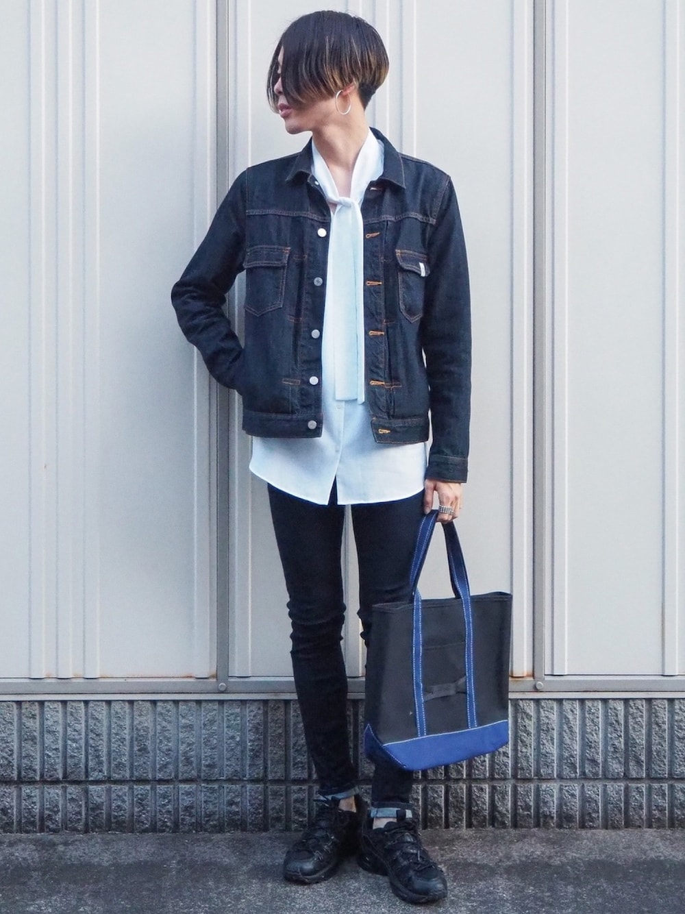 いつもいいね、お気に入りありがとうございます。 デニムonデニム2日目 以前も似たようなセットアップ風を来ましたが、今回はかなり細めなスキニーデニムを合わせました👋 全体的に細めなシルエットに、トップス、パンツがレディースとかなり女性寄りのコーデにボリュームスニーカー、メンズライクなトートバックで程よく中和してみました🤔 まあ簡単に言ってしまえばIラインコーデですね笑 最近はトレンドのビック、ワイドシルエットのものより細めがハマっております。