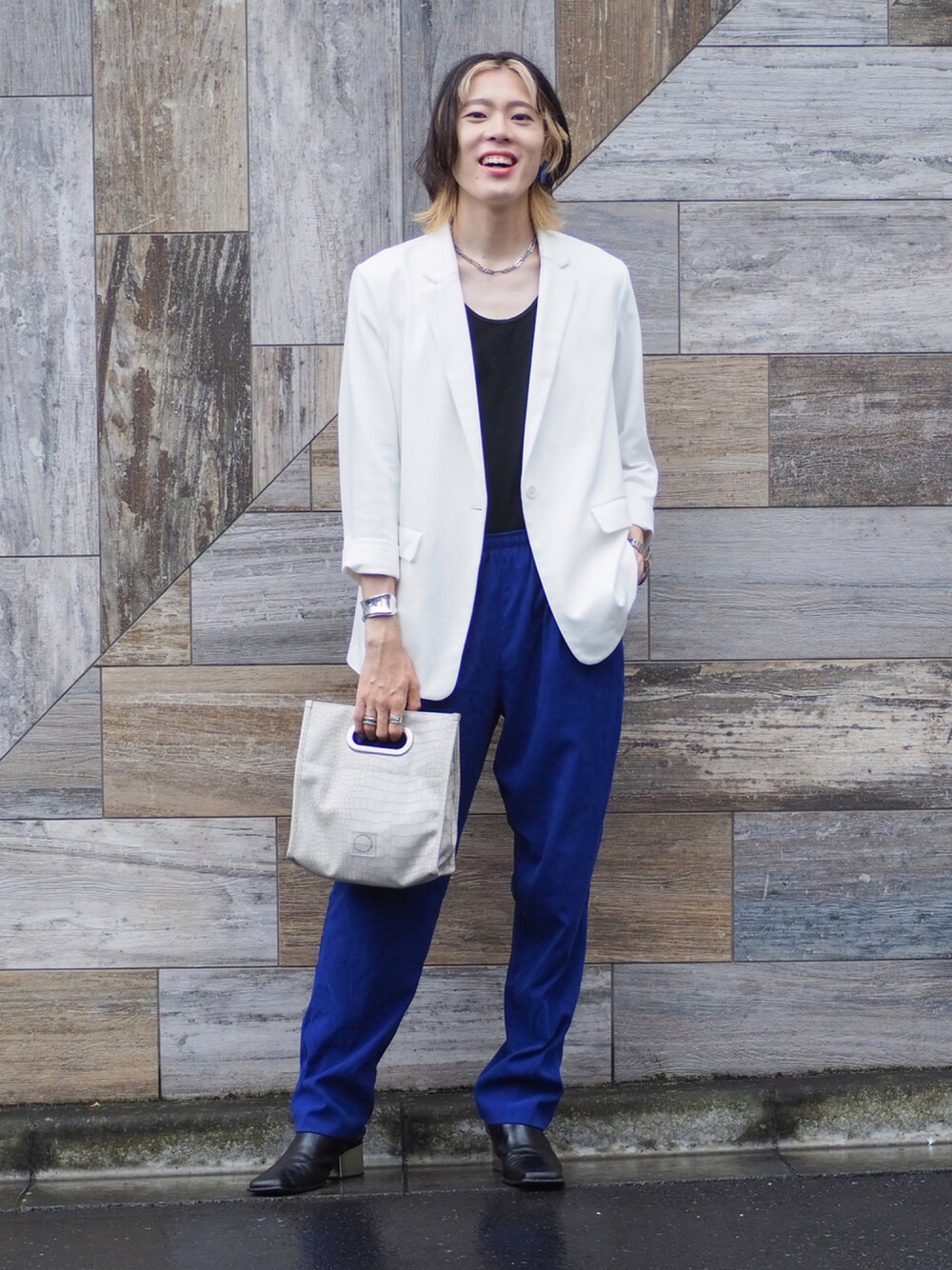 いつもいいね、お気に入りありがとうございます。 今日はホワイト×ブルー 久しぶりのロイヤルブルーのカラーパンツ💙 イージーパンツなんで決まりすぎなくて便利なんですよね〜 自分の好きなカラーリングで、雨の日でもルンルンでした〜🙌