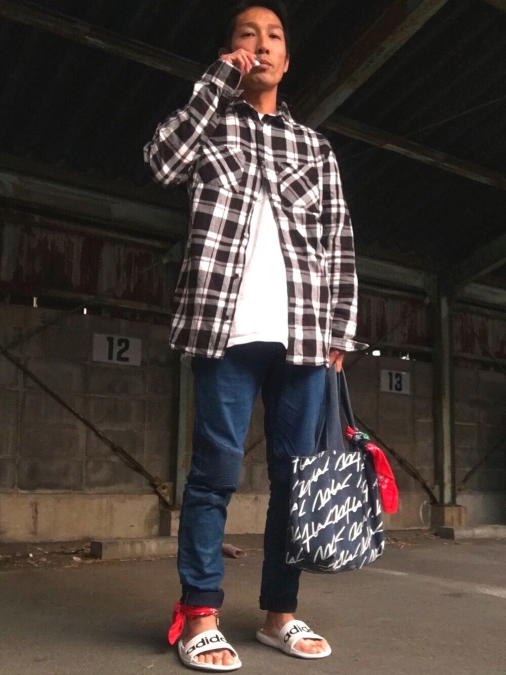ちょっとラフなコーデにしてみた 今年初シャワサン サングラスなしレアww