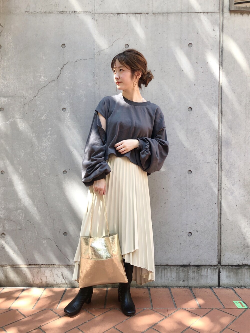 イレヘムプリーツがオシャレすぎるレザースカート♡ 秋くらいからブーツで合わせたいアイテム🐻