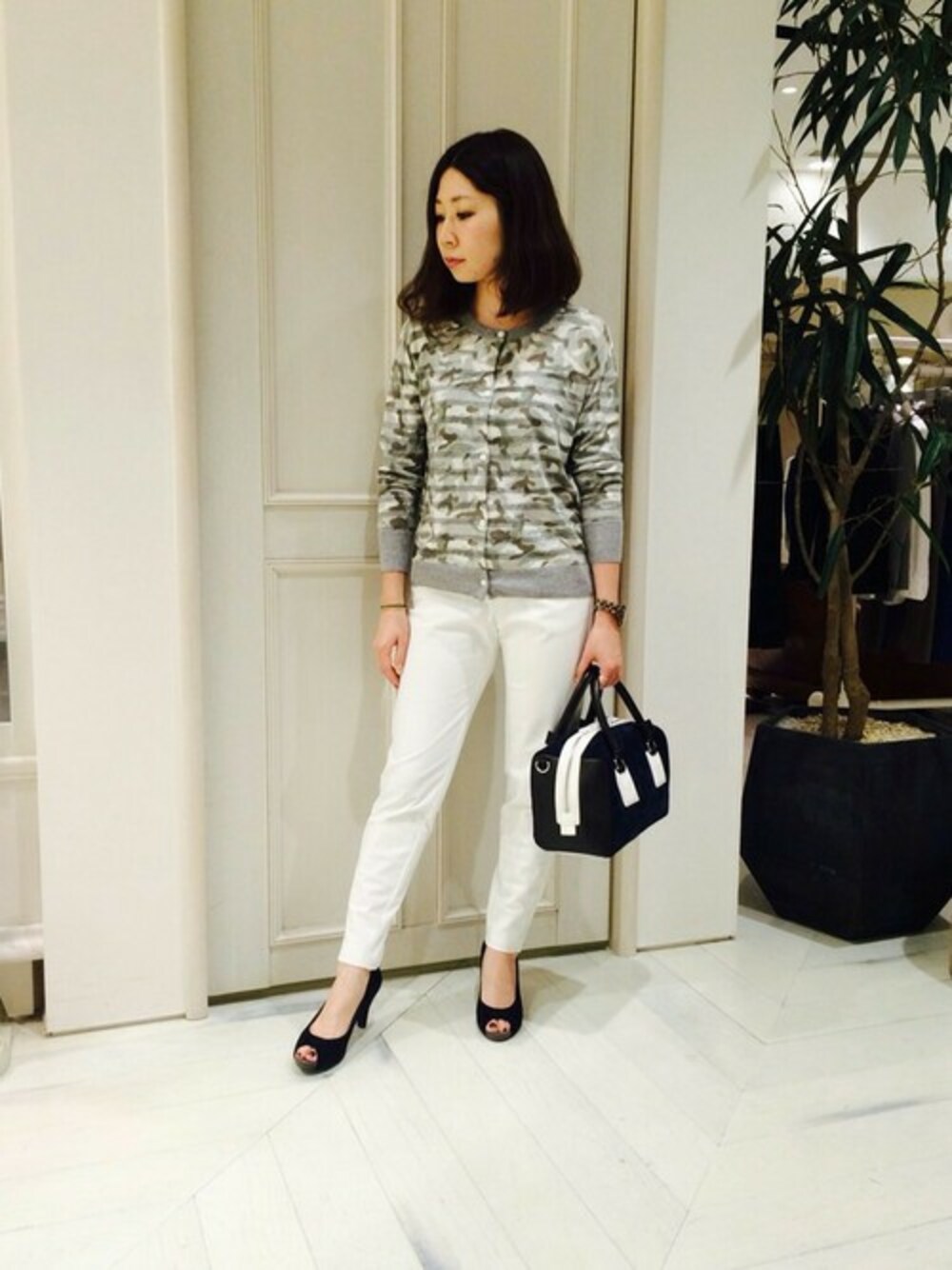 カモフラとボーダー柄の組み合わせのカーディガン。 羽織としても、トップスとしても使えます!