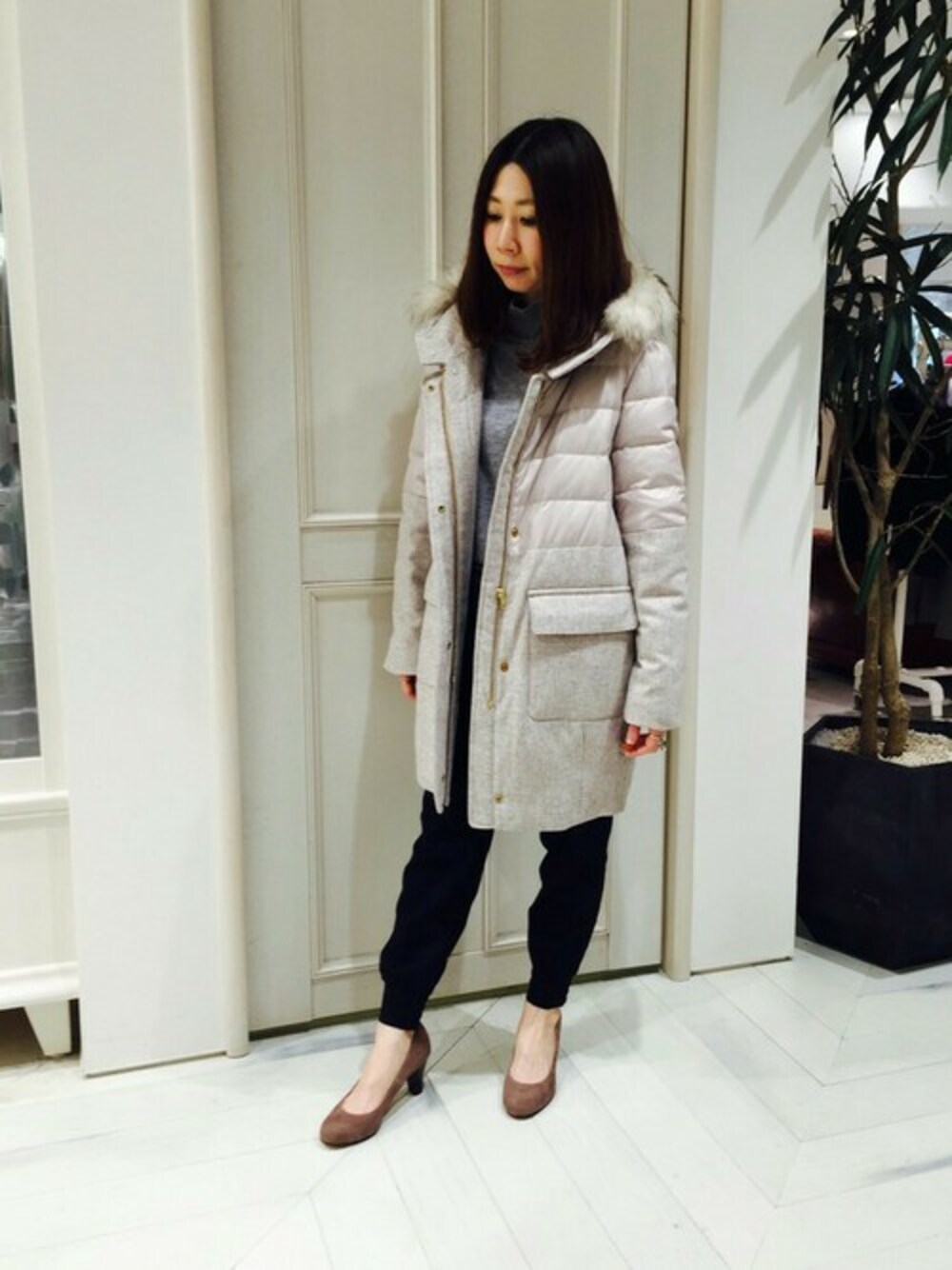 ウールとコンビのダウンは少しきれいめに着ていただけます。 合わせたパンツは、合わせる物次第でお仕事用にもカジュアルにも着ていただけるパンツです。 少しゆったりめにはくのがオススメ。