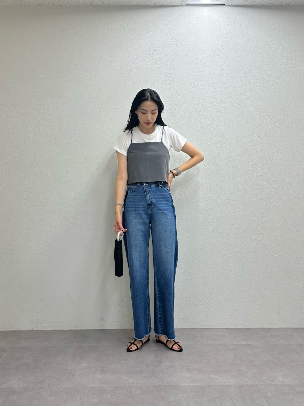MISAKI(COLONY 2139 本部)のデニムパンツ「【7.22(土)12:00販売開始/S~L展開】ウエストアシメサイドラインデニム」を使ったコーディネート