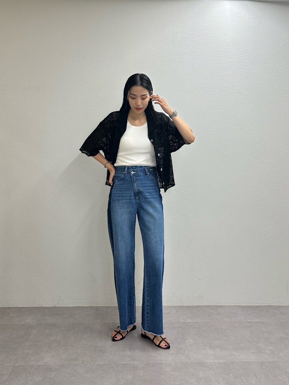 MISAKI(COLONY 2139 本部)のデニムパンツ「【7.22(土)12:00販売開始/S~L展開】ウエストアシメサイドラインデニム」を使ったコーディネート
