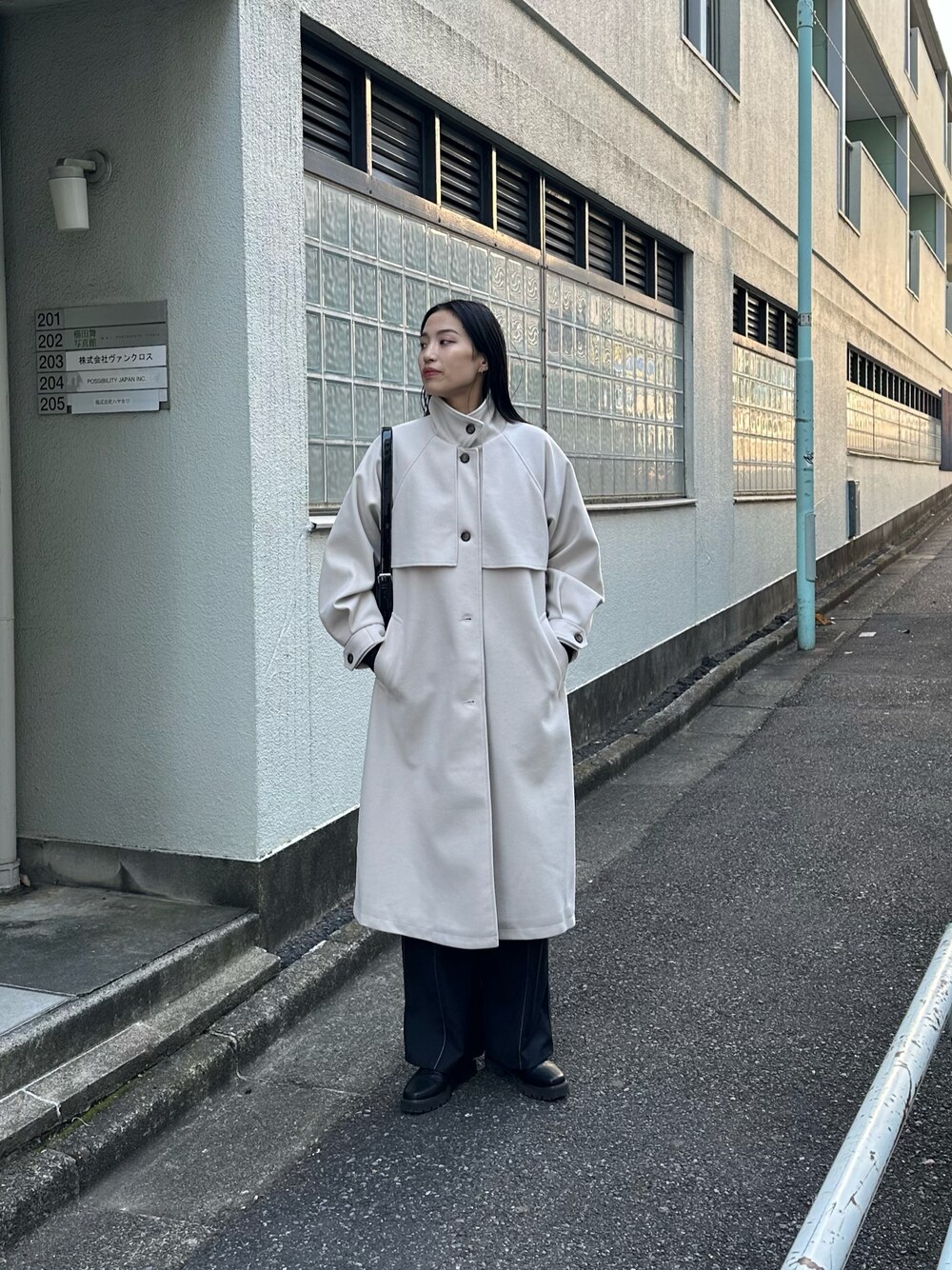 MISAKI(COLONY 2139 本部)のその他アウター「【WEB・一部店舗限定】アレンジカラースタンドモッサロングコート」を使ったコーディネート
