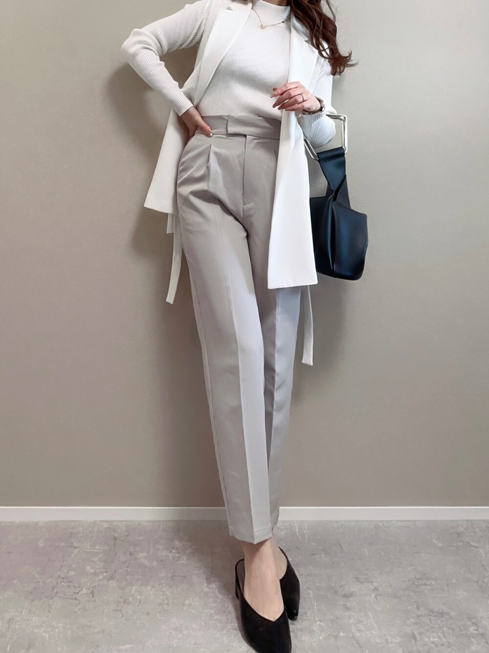 ホワイト×グレーの大人上品コーデ🦋_______________________________ 150cm 骨格ストレート “低身長がする綺麗めコーデ” Instagram▶︎ @tmk_0207 TikTok▶︎ @tmk0207 _______________________________