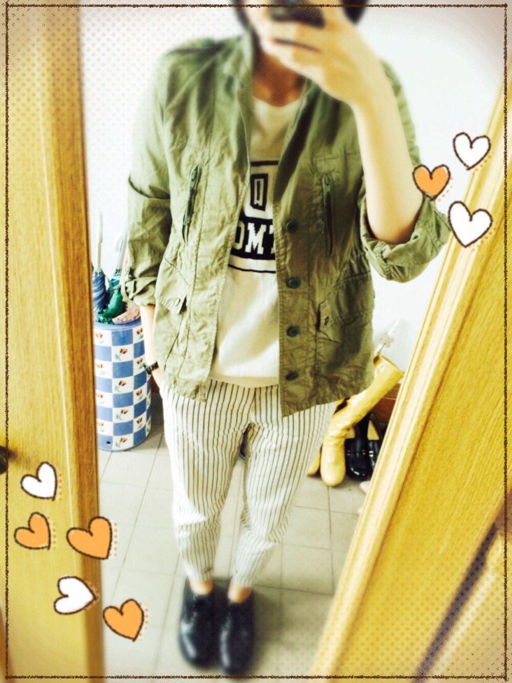 いーとものパンツ「ドビーストライプテーパードパンツ」を使ったコーディネート