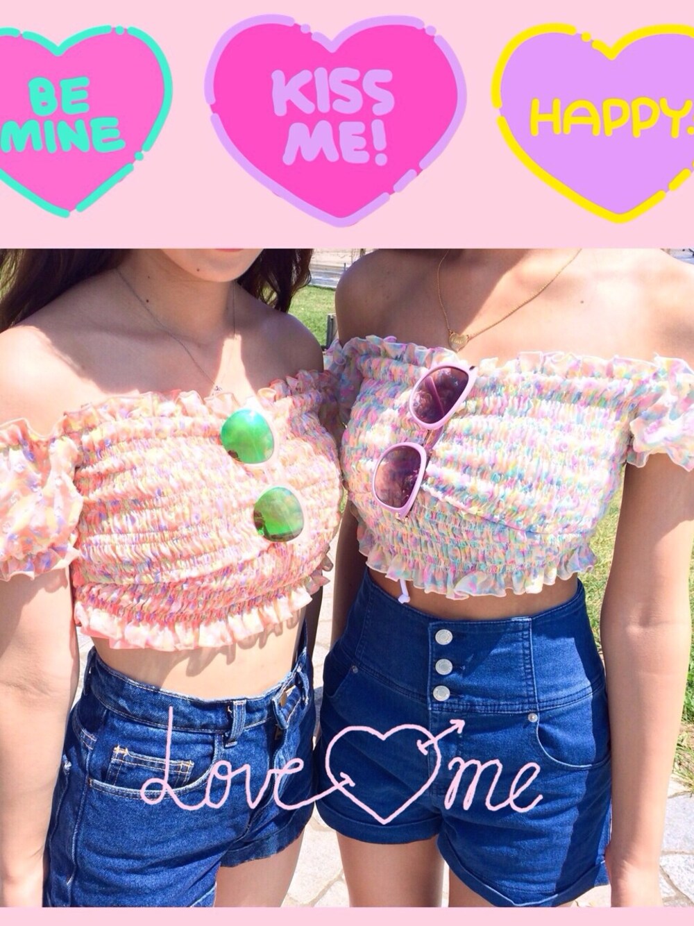 サークル旅行にて しおと(@shiodoll)双子ちゃんコーデ💓 👕tops snidel 👖bottoms Amreican Apprel 海にいったので海コーデ🌊💞 フェスのときと格好一緒!(笑)