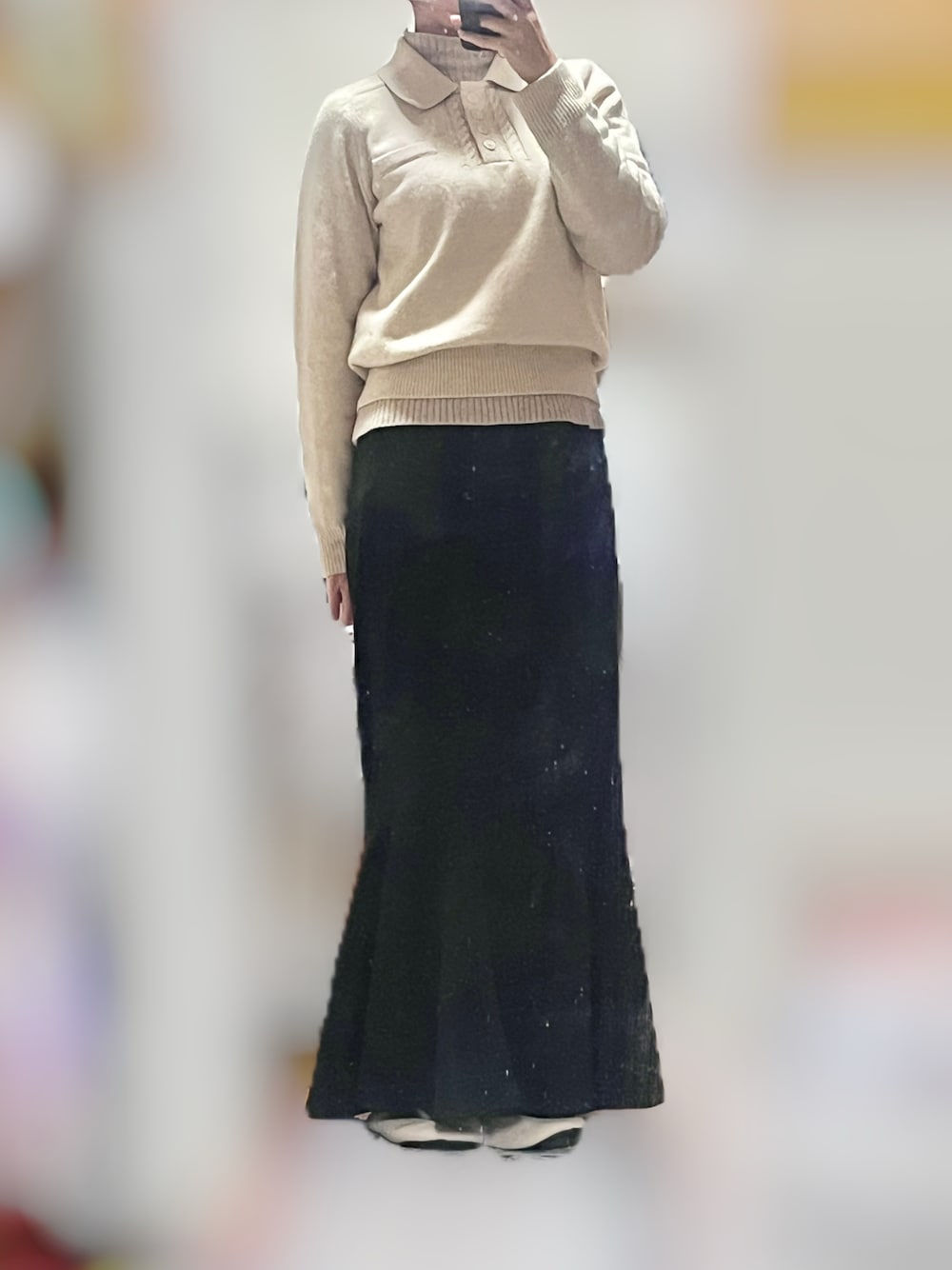 🫥tのスカート「スリットマーメイドロングスカート(秋冬もっちり素材 伸縮あり)」を使ったコーディネート