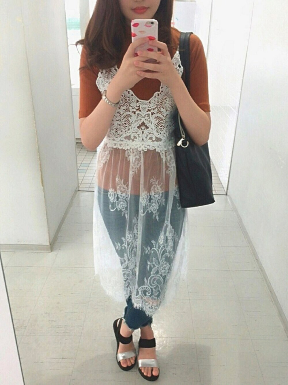 tのキャミソール「レースキャミワンピース」を使ったコーディネート
