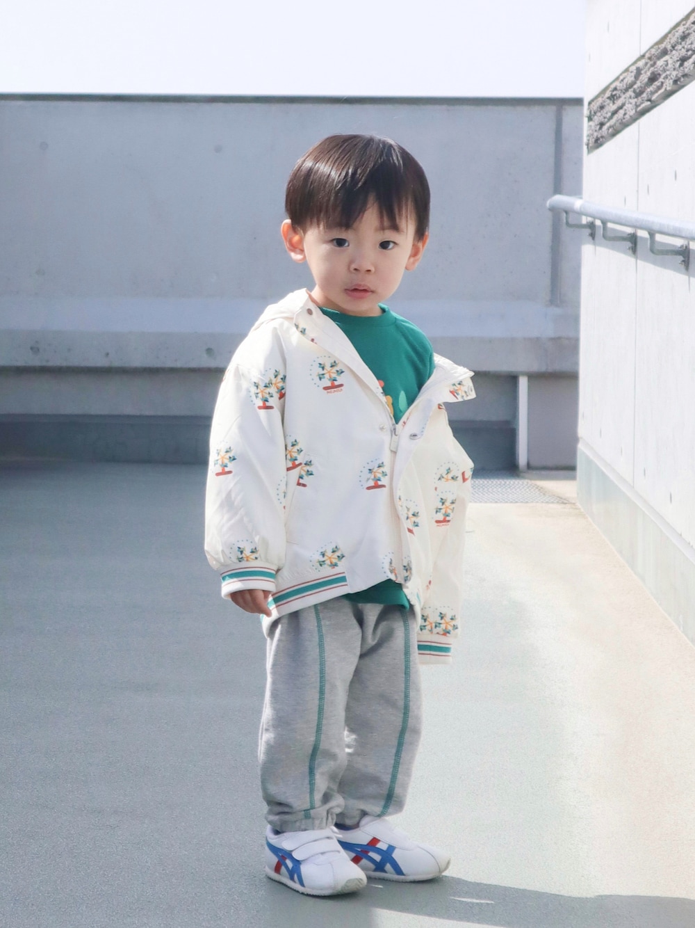 OU_KII_☺︎のスニーカー「asics アシックス 1144A151 13-15 コルセア BABY SL2 101ホワイト/トリコロール」を使ったコーディネート