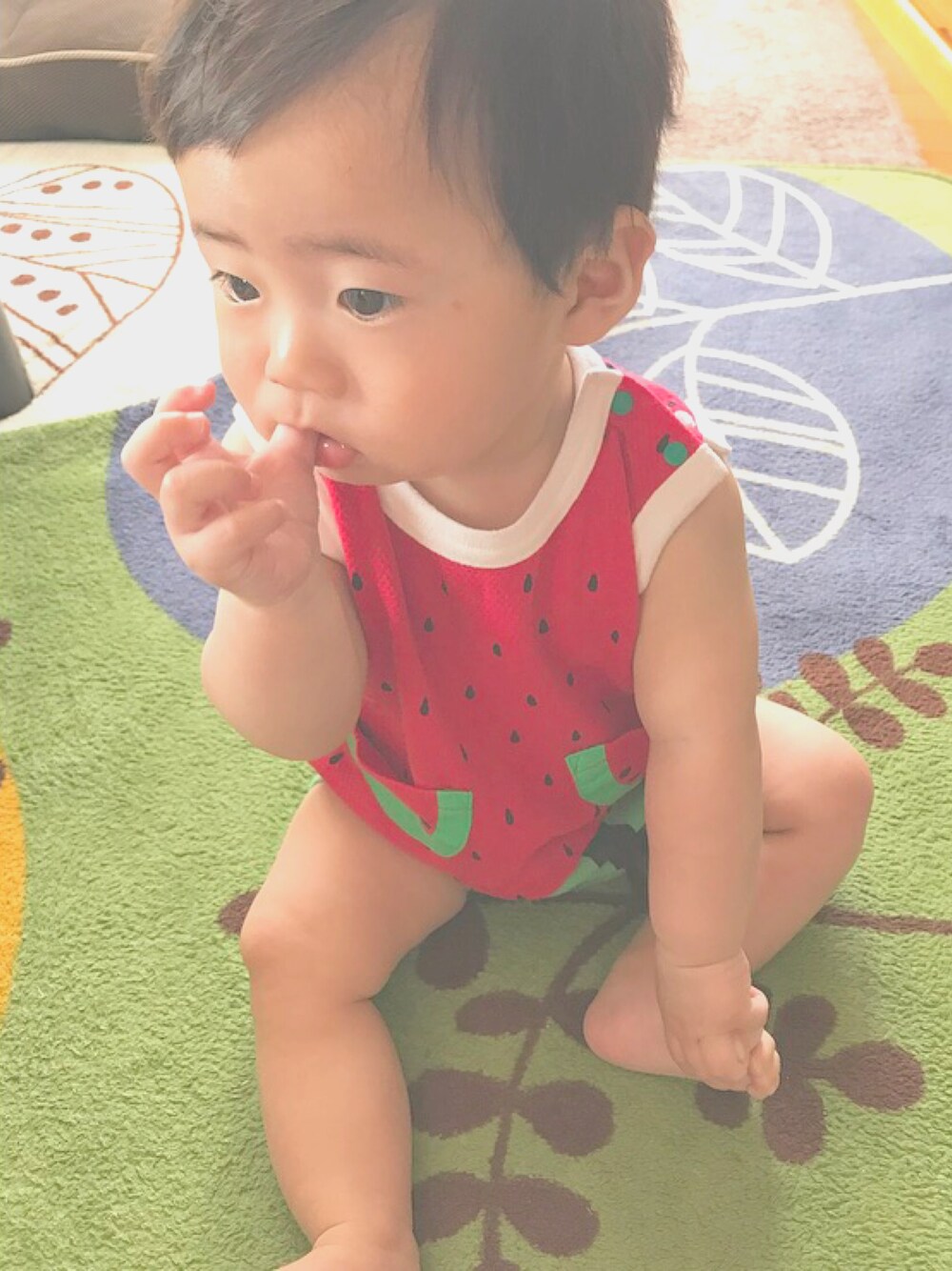 上下いちごのベビー服🍓❤ 服以外なんにも身につけてなくて シンプルいちご❤️ 服がちっちゃくなる前に 着せたかった⍨⃝︎💭