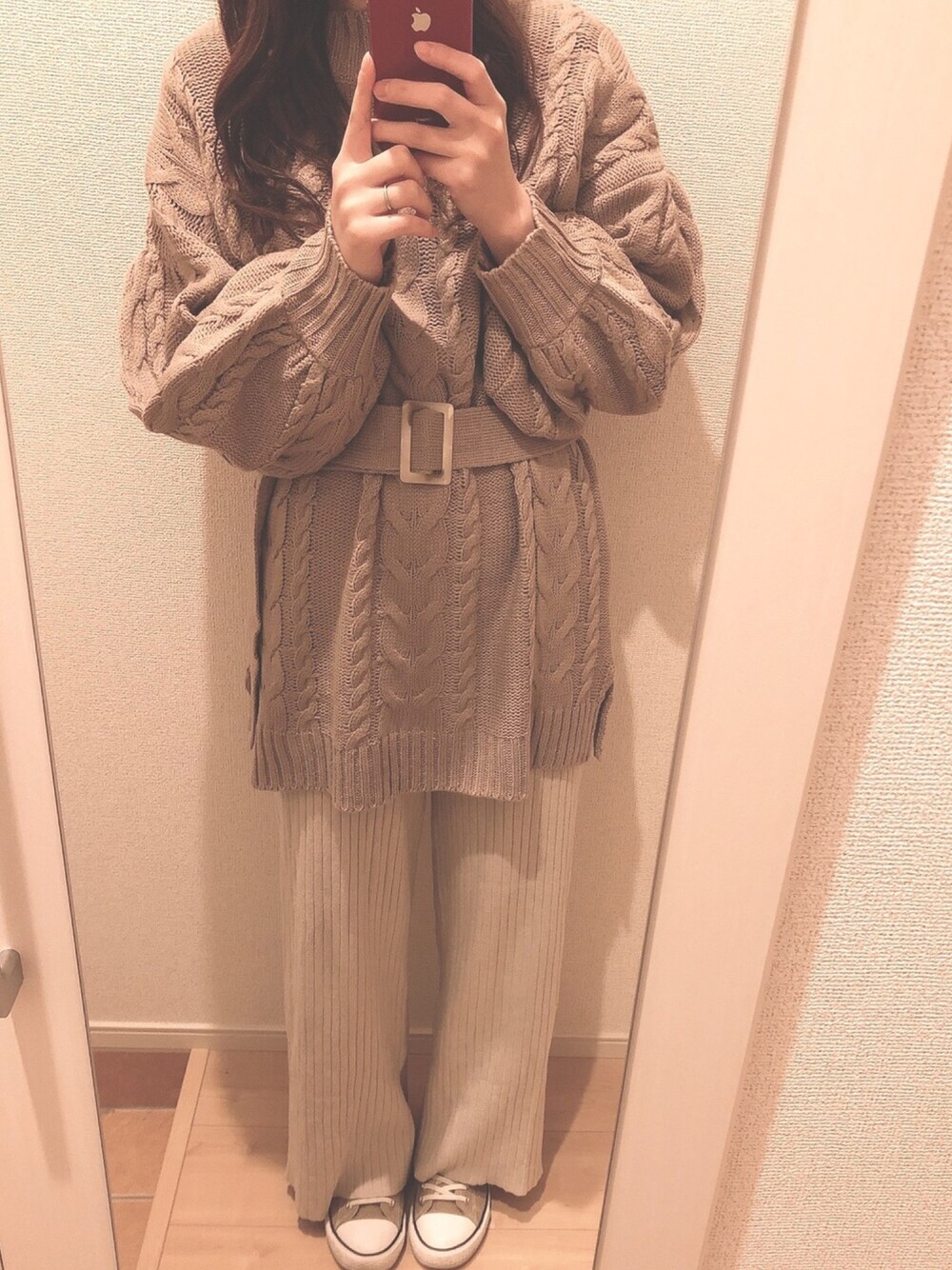 𝕡𝕪𝕠𝕟 ⋆⑅のワンピース「ベルト付きボリューム袖ニットワンピース」を使ったコーディネート