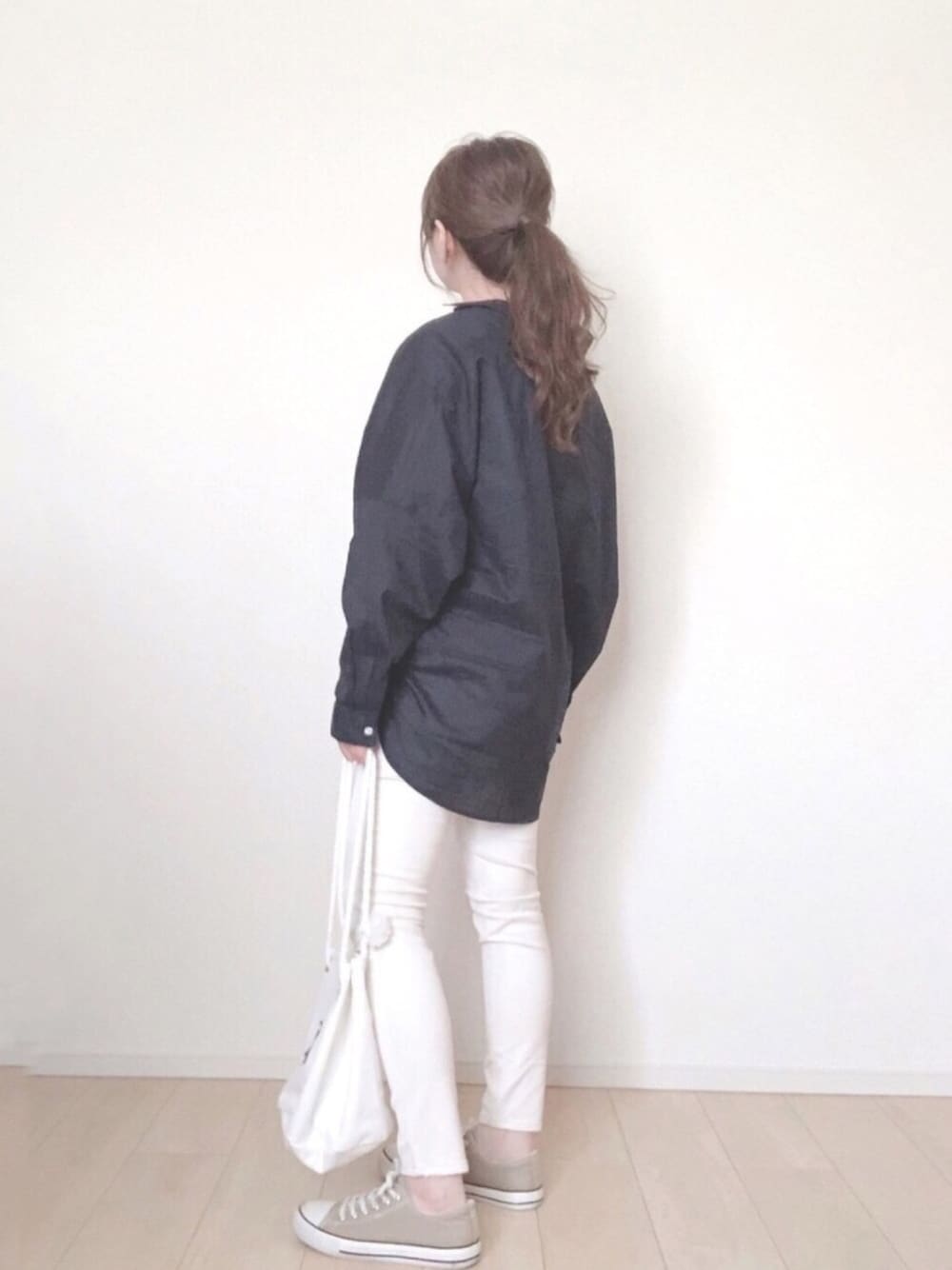 おはようございます( ¨̮ )︎❤︎ いつも 閲覧、いいね、お気に入り本当にありがとうございます☺︎ 今日はAMERICAN HOLICさんのネイビーのシャツとHoneysのホワイトスキニーでシンプルカジュアルに✩.*˚