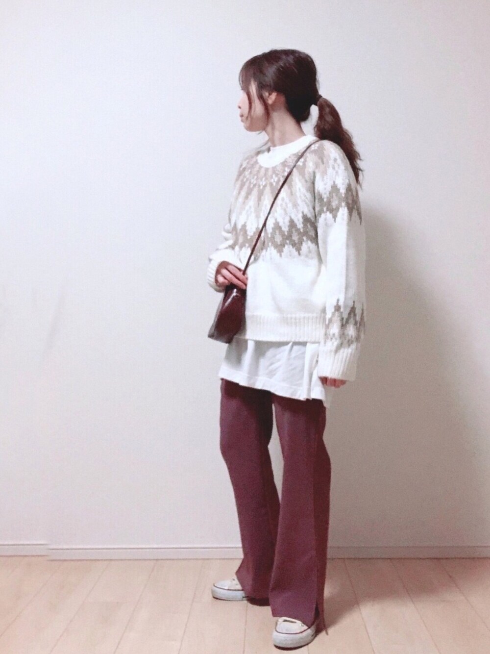 おはようございます♡ xMe1xさん、光さん、rhさん、ぱぱさん素敵なフォルダに入れていただいてありがとうございます( ¨̮ )︎❤︎ 閲覧、いいね、お気に入り、フォローやフォルダインいつも本当にありがとうございます୨୧⑅*. 今日はノルディック柄ということでお気に入りのGUさんのニットとGRLさんのダークピンクのパンツ🤍💗