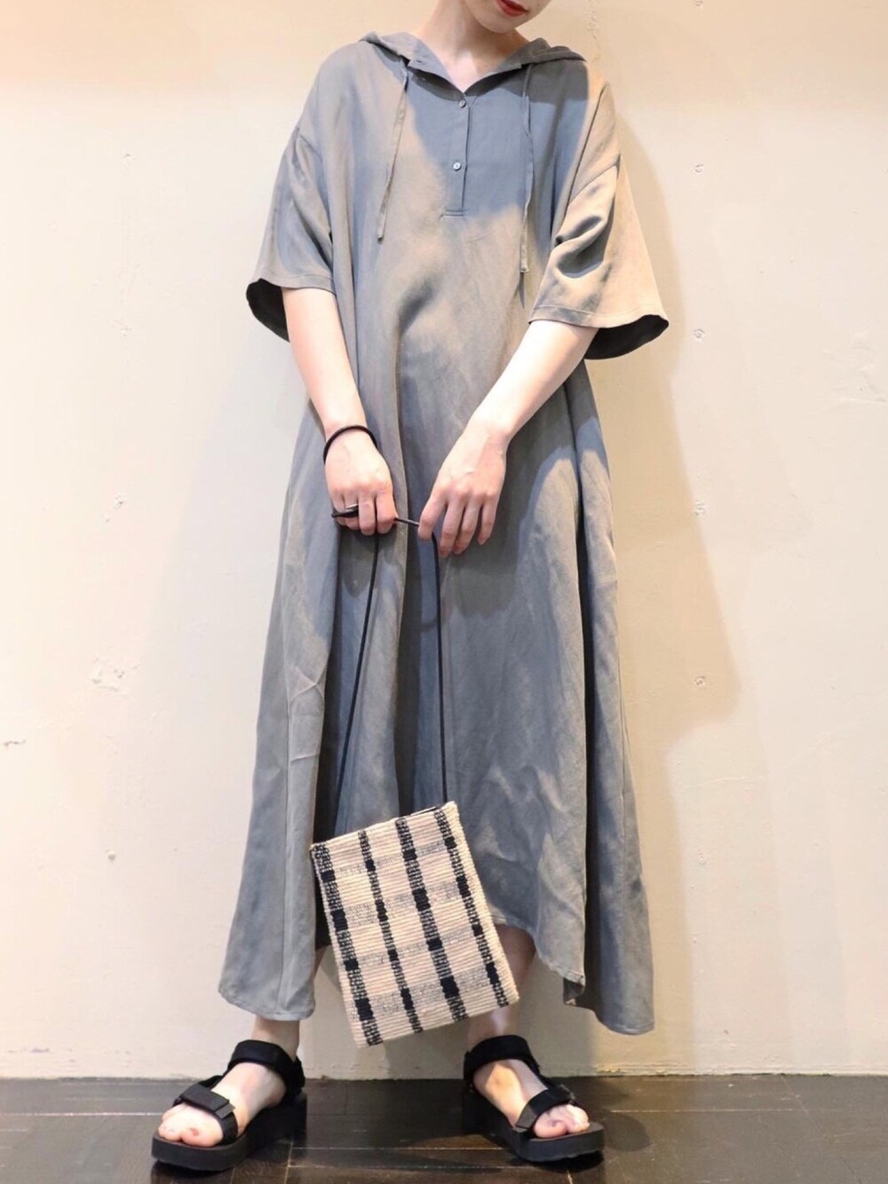 tameのワンピース「mizuiro ind フーデッドフレアワンピース」を使ったコーディネート