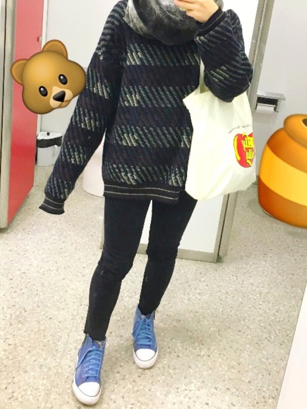 今日は雨だった☔️ このニットはみんなかわいいって言ってくれるし大きめなのがお気に入り✨ スニーカーはデニム素材でかわいい💭
