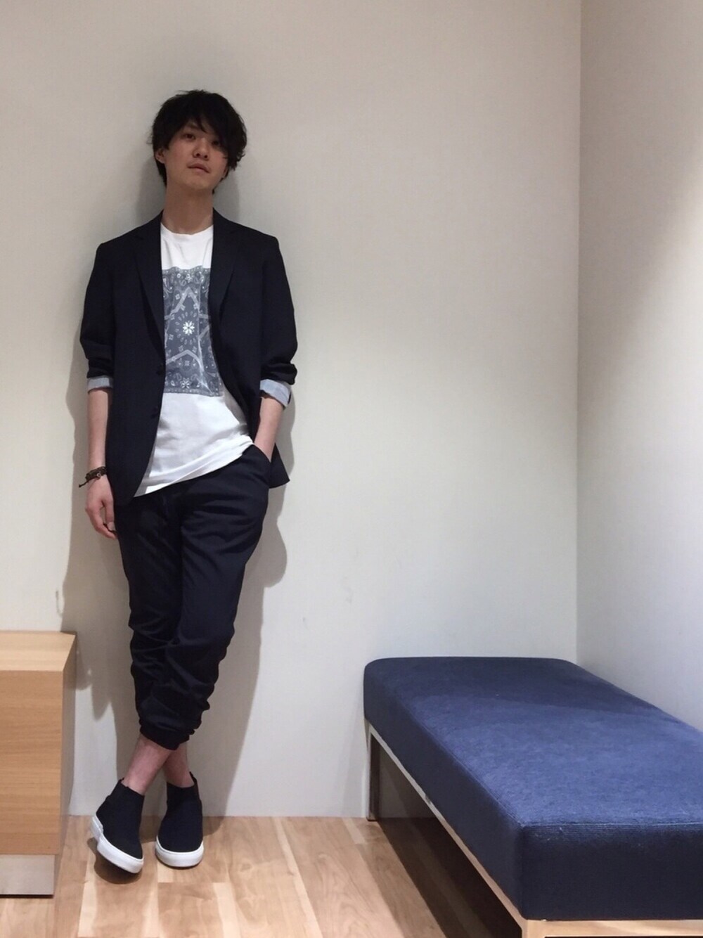 ぬるいですね!梅雨ですね! 汗ばみますね!湿ってますね! そういう時は洗えるジャケット!洗えるパンツです! 今回は久しぶりにセットアップでご案内です! コーディネートのポイントは全部ネイビーです、それだけです!ポイントも何もありません!笑 ストレッチが効いていて サラッとしている生地なのでいい感じです👍 パンツはリブが付いているのでスポーティーな一面もありますよ♫ 中に着ているインナーは 地はペイズリー柄でメッシュに星がプリントされているありそうでなかった物です!