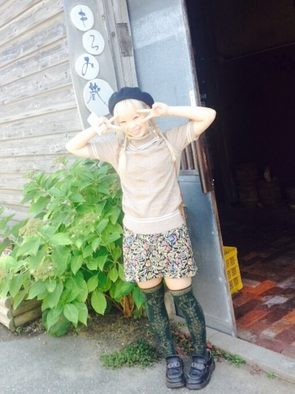 ニット:used スカート:used 帽子:WEGO ソックス:Grimoire シューズ:Dr.Martens バッグ:used