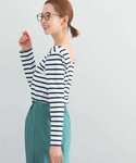 女っぽバックデザインが可愛いカットソー! インナーとしてはもちろんですが、 背中の抜け感がヘルシーなので一枚でも着たい 別注ボーダーカットソーです✨ ブルーと白で爽やかにまとめてみました!