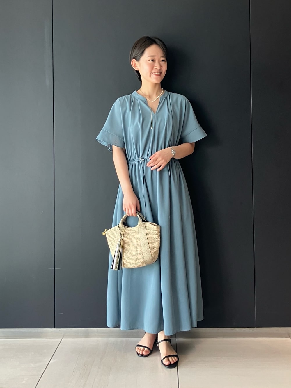 オナカ(URBAN RESEARCH なんばCITY)のワンピース「セミシアードロストギャザーワンピース」を使ったコーディネート