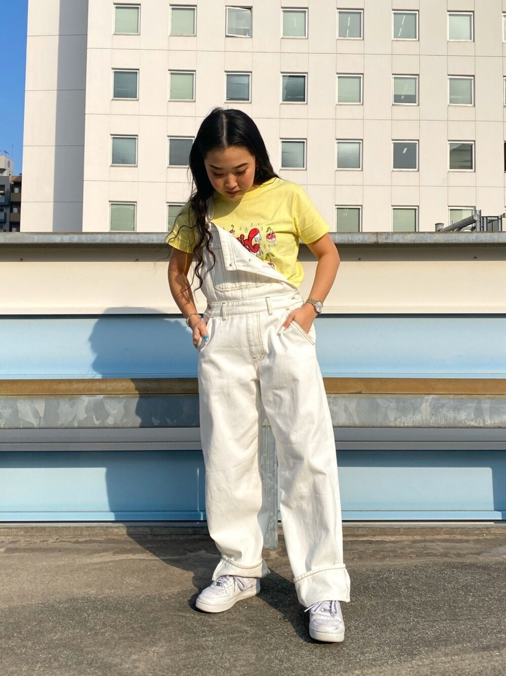 YELLOW×WHITE🤍💛 夏映えコーデですっ❕ 私は155cmでSサイズ着用してますが、ワイドテーパードシリーズはXSでもちょうど良い感じで着用出来ます!!