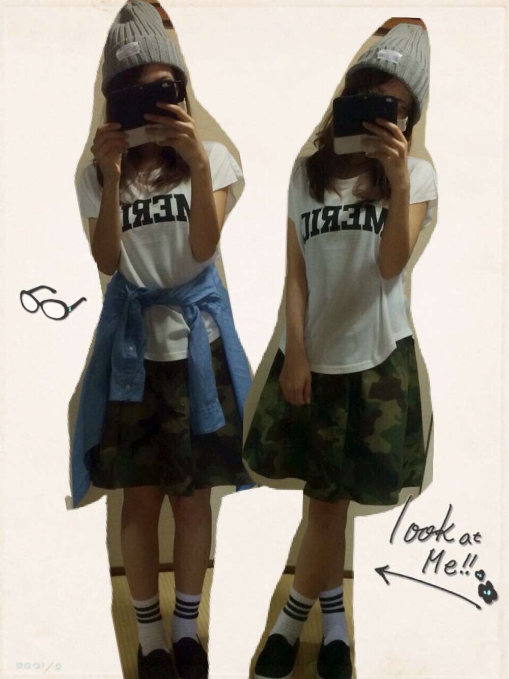 少し前のコーディネート。 もう半袖は寒いな((;゚Д゚)))) ローリーズファームのカモフラスカートは ちょうどいい具合の広がりでかわいい♡