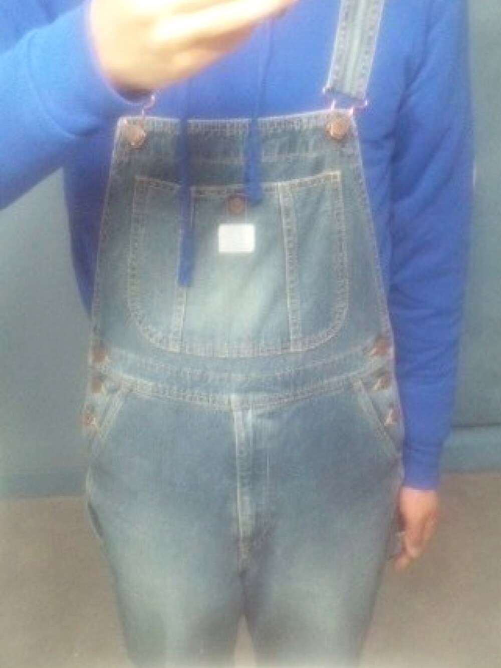 パーカーと色落ちのオーバーオール🥹ブルー✖️ブルーでカッコイイ(*´∇`*)