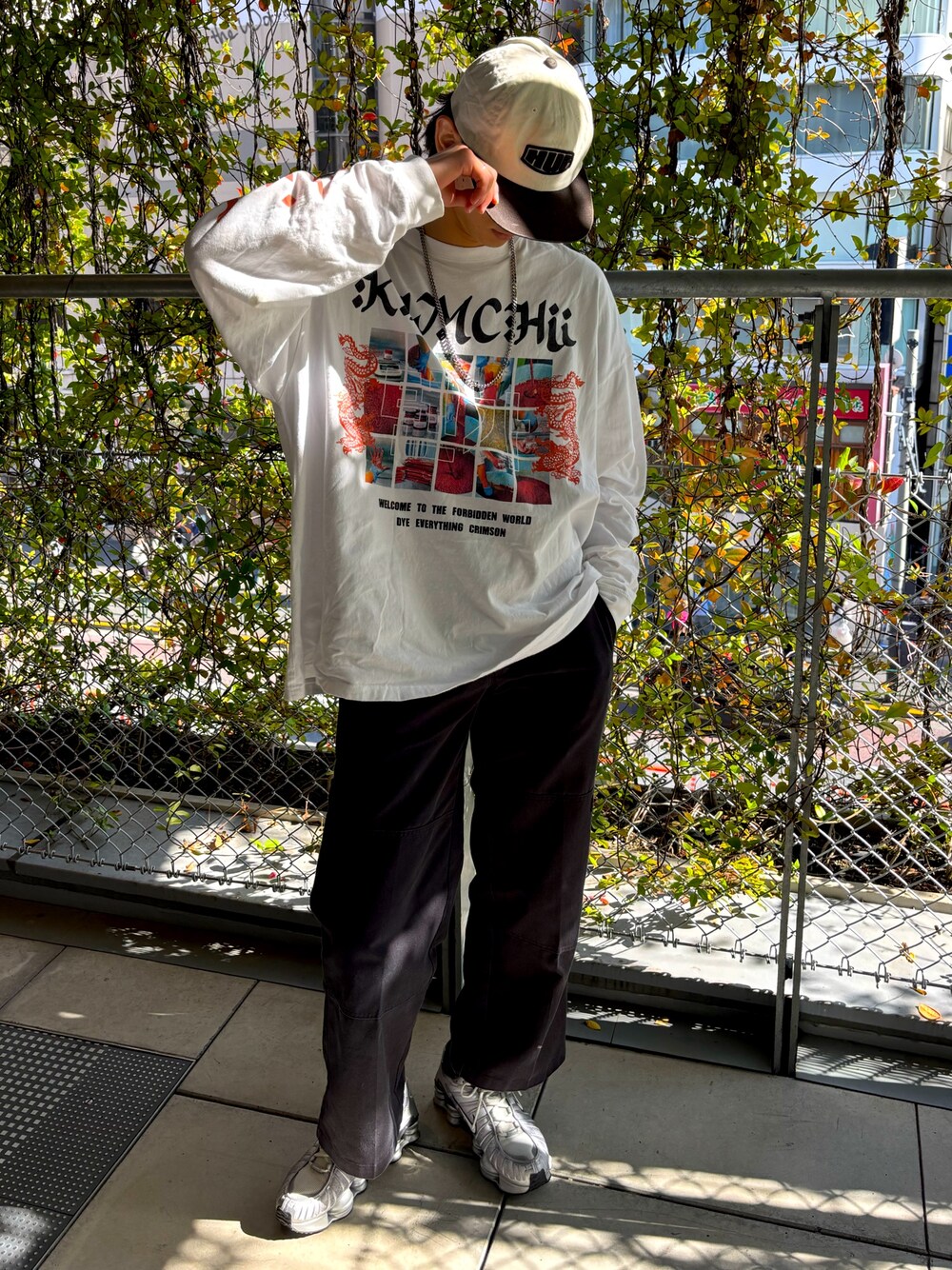 . . . TENGA×KOREAN ROUGEのロンTを使ったストリートコーデ オーバーサイズのロンTにはキムチの素を作る工程の写真が前面にプリントされており、ハングルで"텐가"(TENGA)という文字が入っている ローマ字で"KIMCHii"と書いてあるなど細かなネタも散りばめられている 原宿のTENGA LANDにて販売中です . . .