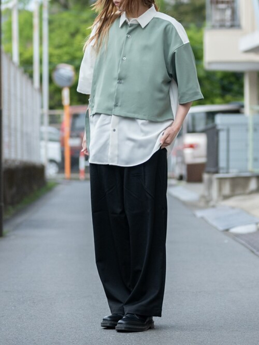 ご覧いただきありがとうございます! フェイクレイヤード付きのポリシャツはこれ一枚で、その日のコーデの主役に!