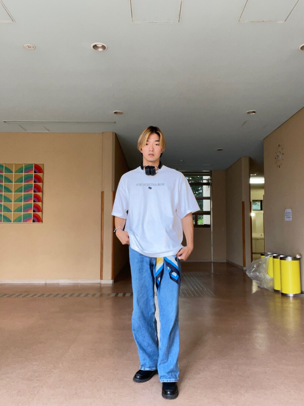 夏はシンプルになりがちなので、UNIQLO✖️Marniのスカーフを腰につけ、首元にはMarshallのヘッドホンをつけてみました!スカーフをつけることで、周りとの差別化ができるのでおすすめです!