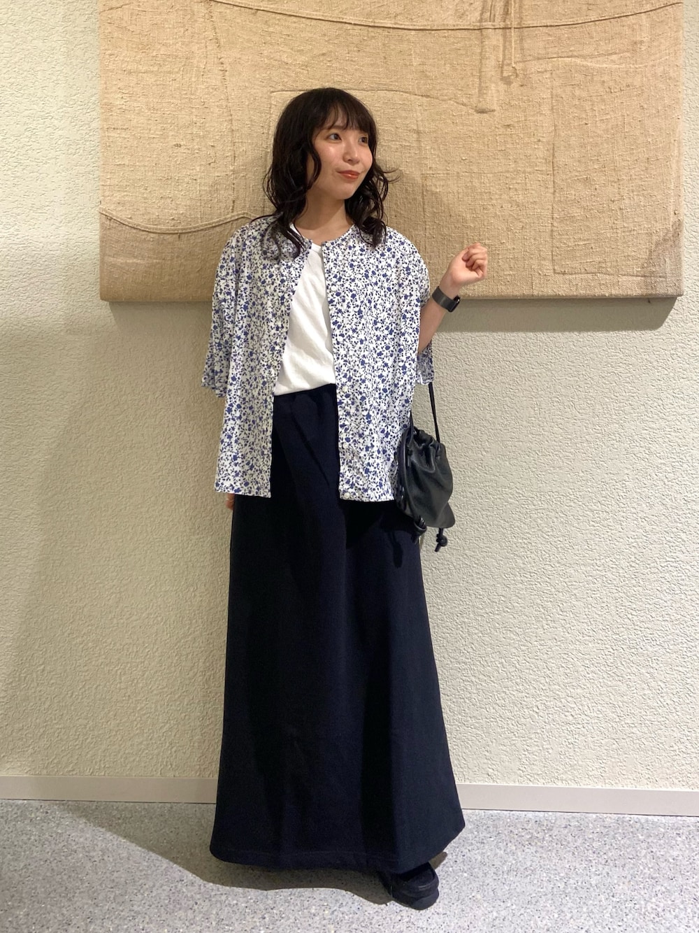 ◯5分袖プリントシャツカーディガン ・華やかだけど控えめ。やさしい存在感の小花柄 柄の主張が強すぎず、チャレンジしやすいです! それでもやっぱり柄シャツはハードルが高いかも... という時は、羽織りにすると柄感がより抑えめに◎ 間にタンクトップを挟むことで、 スッキリ縦見え効果も期待できます♩ ・夏空に映える涼しげな色合い 黒のボトムスも重くならず、 白×ブルーの小花柄が爽やかさをプラスしてくれました☀︎ ◯ドライコットンストレートスカート ・ラクチンかつ上品に やや厚手かと思いきや、ドライタッチな肌ざわりが 心地良いです 𓂃 𓈒𓏸 ゆとりがありリラックスして履けるものの、 ルーズにはならずスッキリ見えるのが良いですね♩ ・145cmで、腰を1折りして着用 150cm以上ある方だと、履く位置を調整すると 折らずに履ける長さだと思います。 個人的には折っても違和感はほとんどなかったです! ◯丸胴コットンフライスタンクトップ ・夏場も快適な薄手素材 肌に張り付く感じがなく、ストレスフリーな着心地です。 首元がわりと広めなのかなと思いきや、 ちょうど良い開き具合でした! これは間違いなく使えそう♩