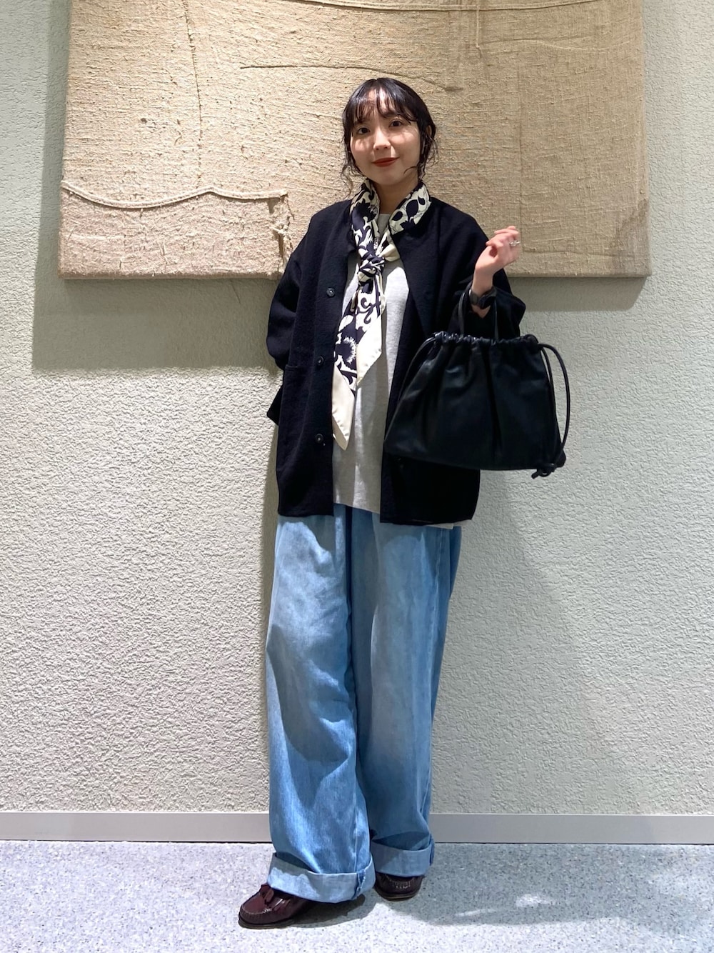 ◯ 圧縮ウールショートジャケット (145cm)ちょうど良いサイズ感です! 小柄な方もぜひ♩ お袖だけ少し長かったので、折っています。 ・オンオフどちらにも映える、軽やかジャケット 今すぐ羽織れるお素材感。すごく軽くて肩こり知らずです! パッと羽織れる手軽さはありながら、 上品な佇まいで大人コーデを彩ります𓆸 ◯ コットンカシミヤプルオーバー (145cm)程良いゆったり感で着られました。 お袖はリブでたぷっととまってくれます! ・ずっと着ていたくなる柔らかな肌ざわり ニットとスウェットの間くらいの感覚で着られます。 お家で手洗いができるのも推しポイントです♩ ◯フェードデニムイージーパンツ (145cm)裾を2回ロールアップして着用。 個人的には折ってカジュアルに履く感じも好みです☀︎