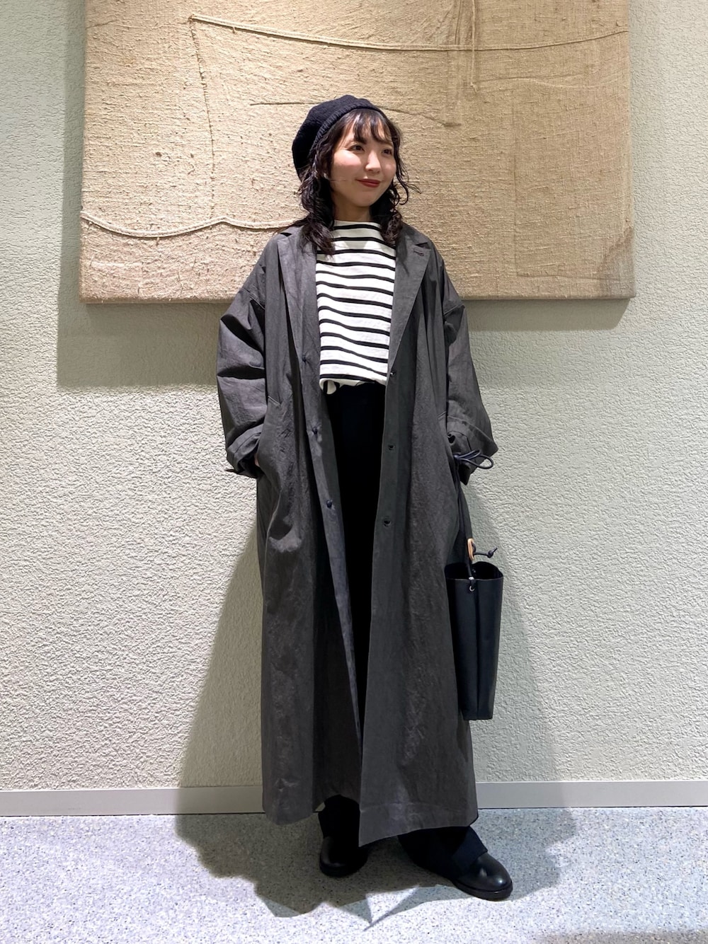 145cm的レビュー 145cm|テーラードカラーショップコート チラッとボトムスが覗く丈感。 スッキリとした印象なので、 この長さでも、着られている印象になりにくかったです◎ 裏地がついていない分、 お袖を折って調整がしやすいのも嬉しいポイント。 負担なく羽織れる、軽やかな生地感です♩ 145cm|コットンボートネックボーダーカットソー シンプルながらも、たっぷりシルエットが目を惹く1枚𓆸 お袖は折って調整しています。 程良い厚みがあり、1枚でも安心して着られました! ボートネックとは言いつつも、 首元ががっつり開いているわけではないのでご安心を☀︎ 145cm|ストレッチトラウザー 0サイズで、わたしの身長だと少し長めの丈感でした。 体型が近い方は、ベルトをするかお裾直しをした方が よりキレイに履いていただけると思います。 シルエットがなんとも秀逸で、 ラクなのにスッキリと華奢見えします! お仕事やフォーマルなシーンにも◎