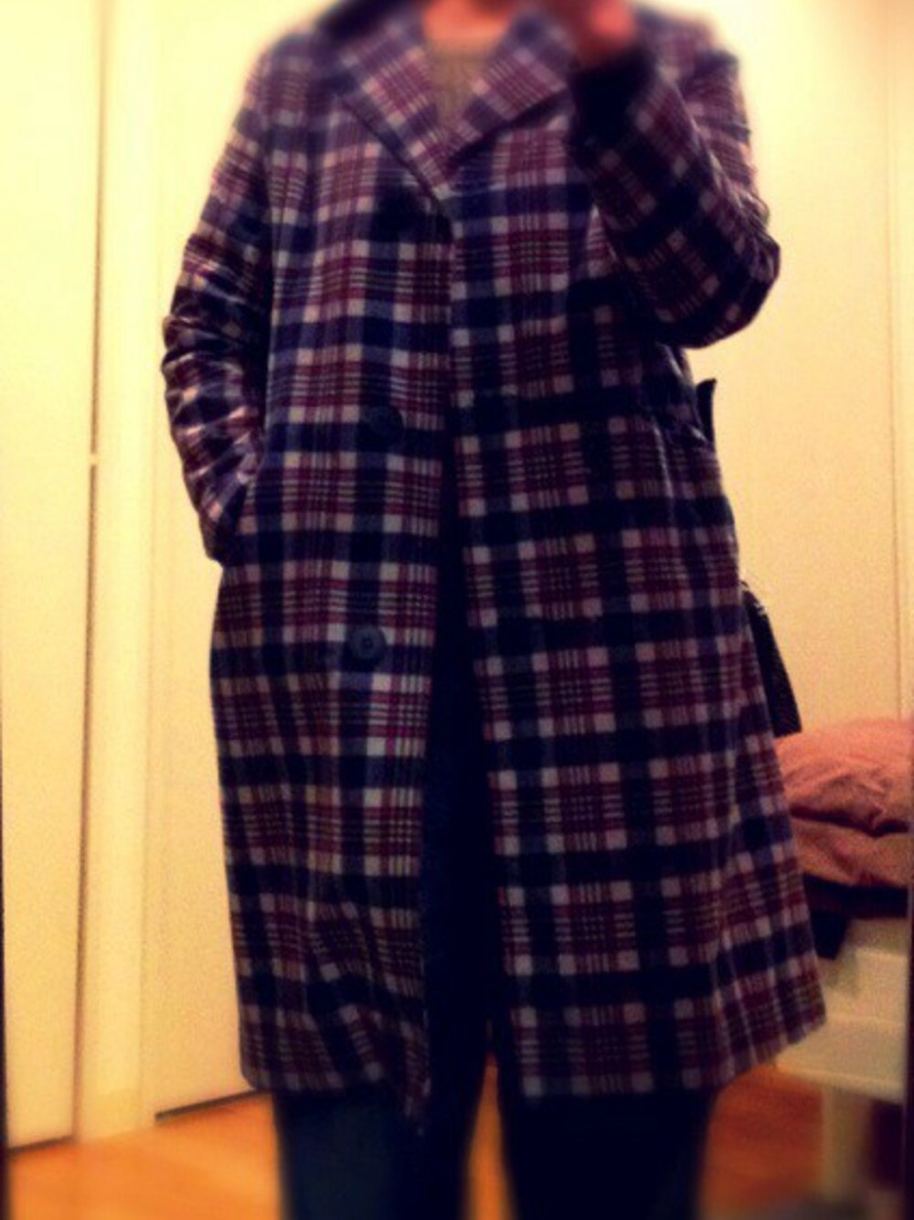 早く暖かくならないかなぁ~♪ そんな気分で買ってしまった 形が綺麗な古着のコート 古着好き? チェック好き?