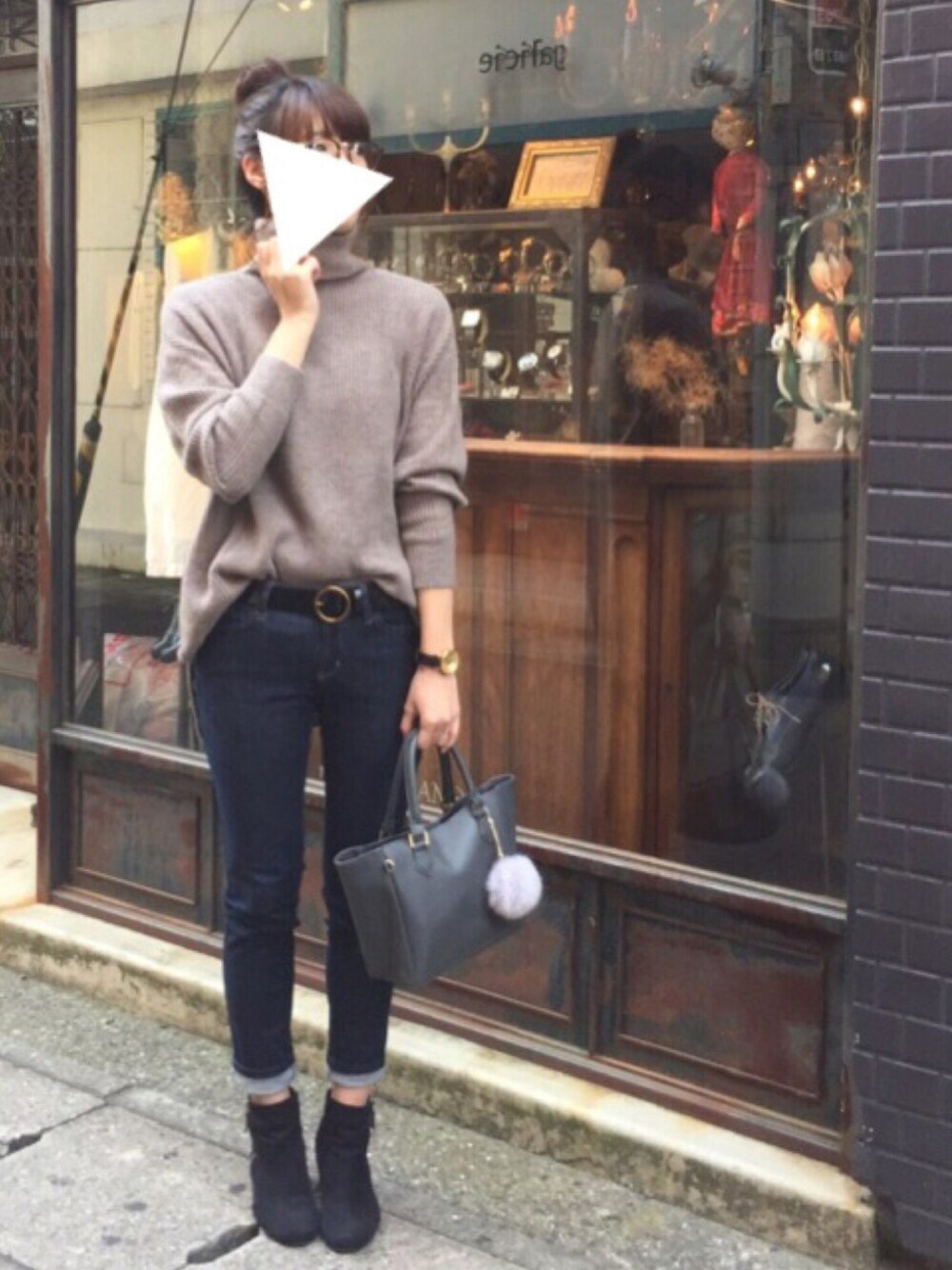 タートルネックとお団子ヘアー🍡 バッグは大人ミューズ12月号の付録。 以前どこかのノベルティでもらったファーチャームを付けてみました。 おまけばかりだけど、両方クオリティが高くて感動!